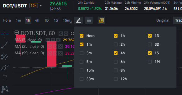 Trends and charts will depend on what you choose and will show in very different ways, here are some examples that I've taken from Binance on Polkadot (DOT/USDT) assets.