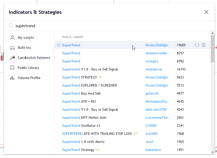 Using Tradingview.com, we can easily use the Supertrend indicator by looking it up inside the Indicators listing. Take note there are many variations there, so to be safe just use the one with the highest number on it.