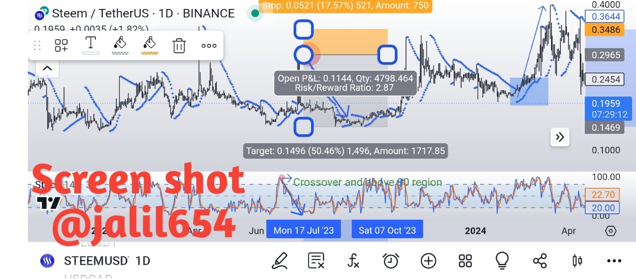 I applied both the indicators on STEEM/USDT pair in tradingview. The timeframe I choose is 1Day.