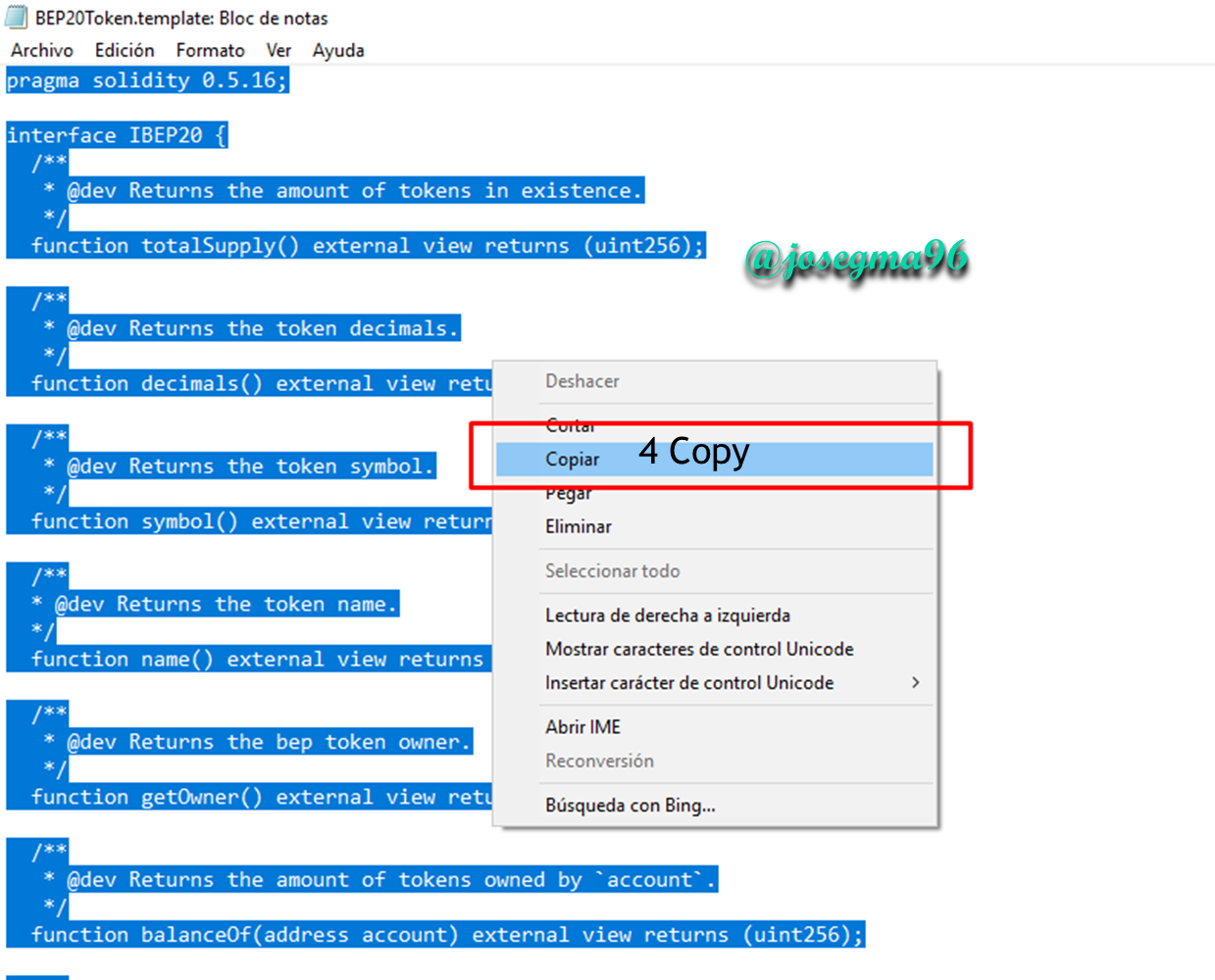 Para poder crear el criptotoken debemos descargar el código fuente que nos permitirá crear nuestro token, en nuestro caso crearemos un token BEP-20 de la Binance Smart Chain por lo que necesitaremos el código fuente de los criptotoken estándar BEP-20, para descargarlo debemos hacer lo siguiente:
