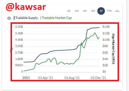 In the screenshot above we can see the last one year Tradable Market cap from the current time backwards.