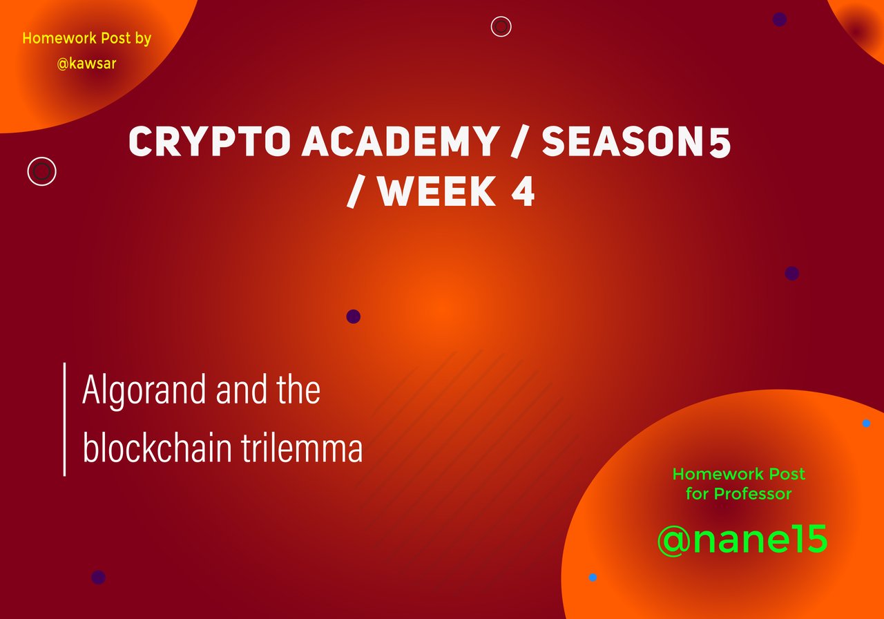 Today in this post I will share with you my Homework Task (Season 5/Week-4) for Professor @nane15. The course that the professor @nane15 has discussed with us "Algorand and the blockchain trilemma". I have learned a lot about The Algorand and the blockchain trilemma from this lecture of the professor.
