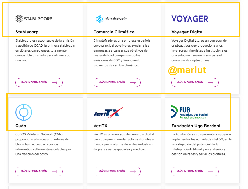 Podemos ver incluso las organizaciones que se encuentran trabajando con esta blockchain actualmente y que se esperan mantener y crecer en el futuro.