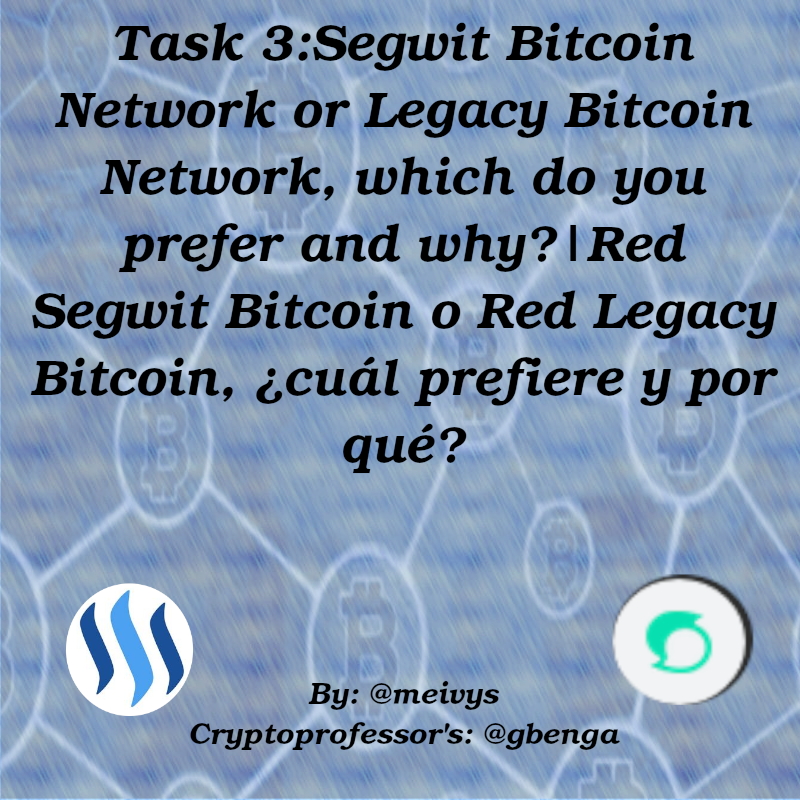 Task 3: Segwit Bitcoin Network or Legacy Bitcoin Network, which do you prefer and why? Cryptoprofessor's @gbenga, by @meivys