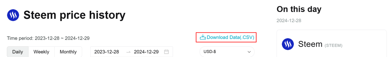 Here is the data preparation for the predictive model of STEEM/USDT. For getting the dataset csv file I went to the Bitget. There was the historical data of the STEEM. I downloaded the historical data about the steem on a daily timeframe.