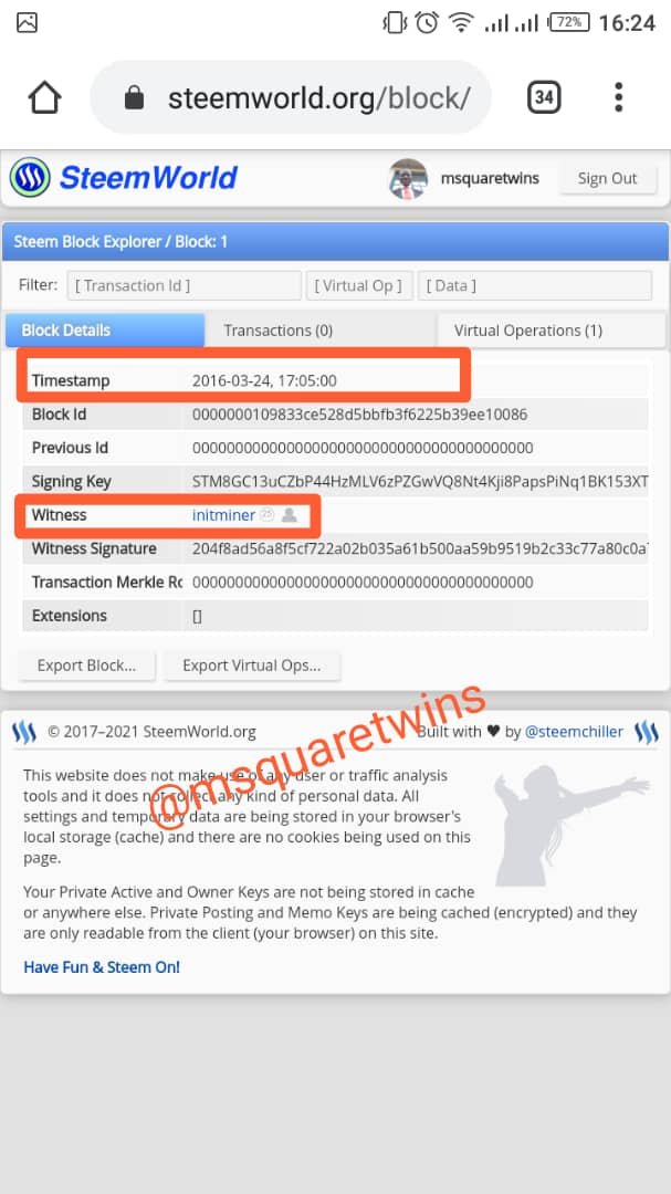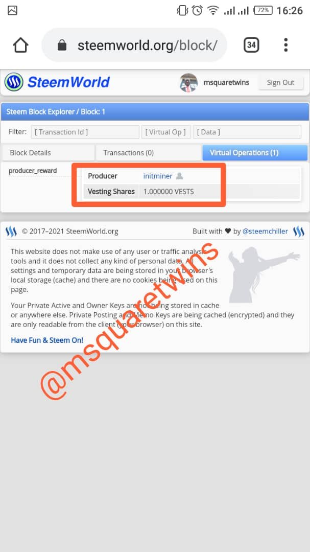 Then you have the information about steem genesis block. The screenshot of the steem genesis block data is provided below.