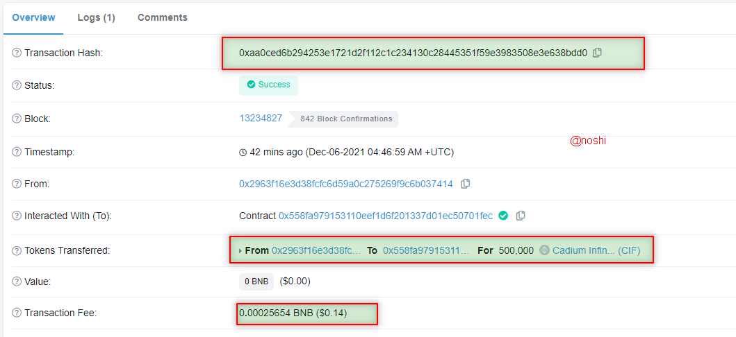 You can see that in the Metamask wallet Activity, half of my CIF tokens are sent to the PankcakeSwap public exchange.