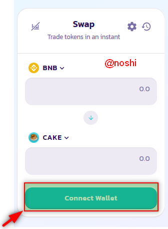 - After wallet connection, you need to click on the arrow button at the right of the CAKE token name.