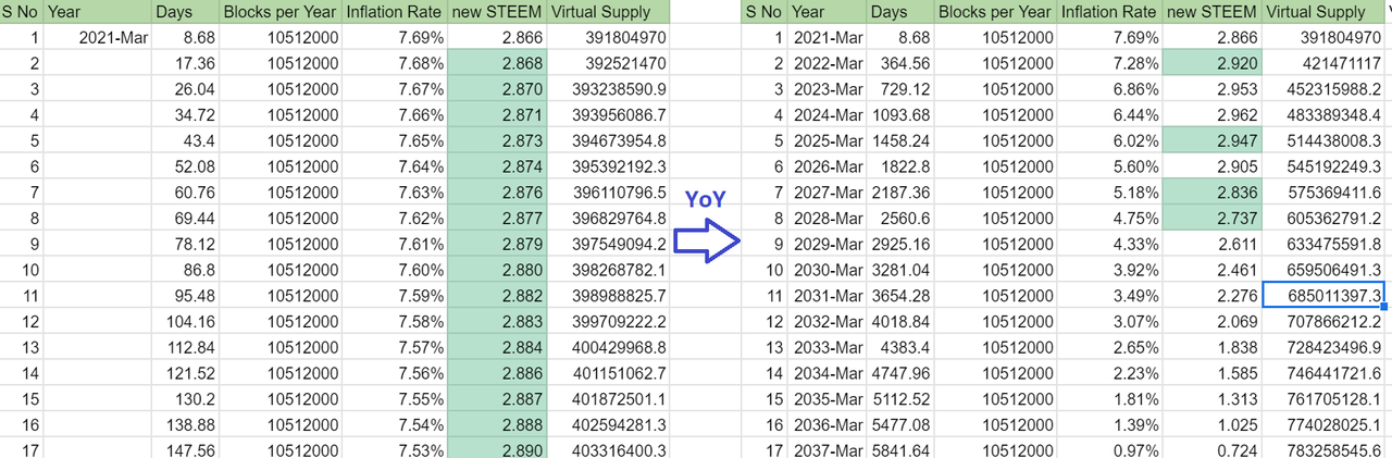 (1) As most of the STEEM tokens will be minted in the next 10 years or so(on account of inflation), how important it is for you to build your SP in the next 10 years and build significant influence power in the form of SP? How difficult will it be to earn STEEM rewards after 2031? From 2021 to 2031 how many STEEM tokens are going to be minted(approx)? In which year the inflation and Block reward is likely to saturate(tentatively)?