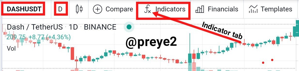 pair with a 1 day timeframe - To add the random index (KDJ), I clicked on the "Indicator tab"