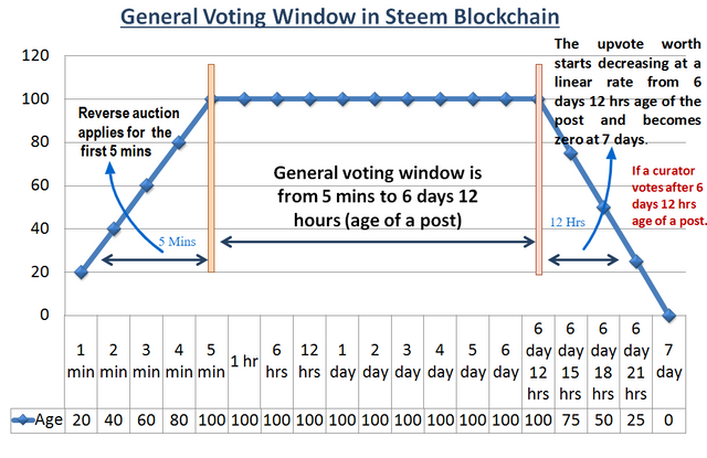Question:What will happen if you vote before "5 mins age of a post" & after "6 days 12 hrs age of post" in Steem Blockchain?