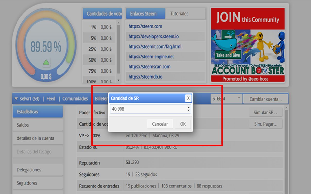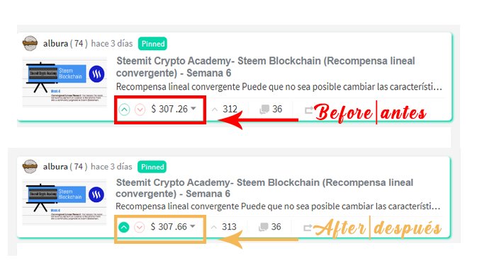 In my case, I still do not have enough voting power and my SP is very low is 30, that is, I still do not have a positive value in my vote for the other publications, but I can benefit in a small way, by voting content with high valuation by the curators with higher SP. Here is my example of the vote, before and after.