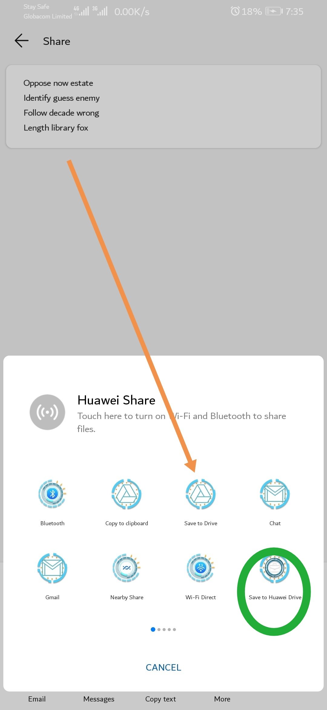 I didn't save to Huawei drive to avoiding losing it if anything should go wrong with my phone.