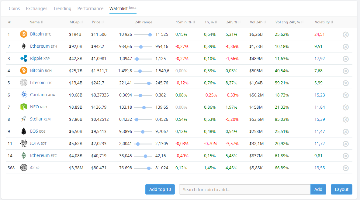 I tried to make list by WorldCoinIndex.