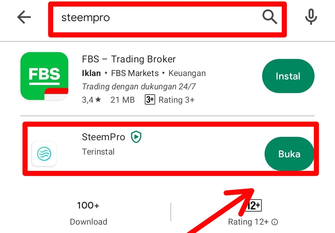 Langkah ke 3: Kita akan memilih aplikasi SteemPro setelah hasil pencarian muncul. Kita harus memastikan bahwa aplikasi yang kita pilih sesuai dengan keinginan kita, hati-hati karena banyak juga aplikasi yang palsu. Maka untuk itu kita harus memeriksa juga ulasan pengguna dan juga peringkat aplikasi untuk melihat gambaran yang lebih baik tentang kualitas dari aplikasi serta apa saja keandalan aplikasi ini.