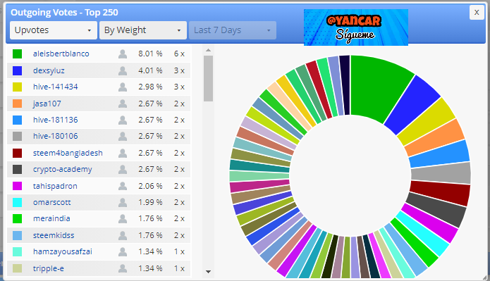 Debemos ser cada día más descentralizados y la distribución de votos es un factor importante para alcanzar ese rango, en estos momentos la curación por parte de las ballenas es la causante de que muchos usuarios no duren en la plataforma.