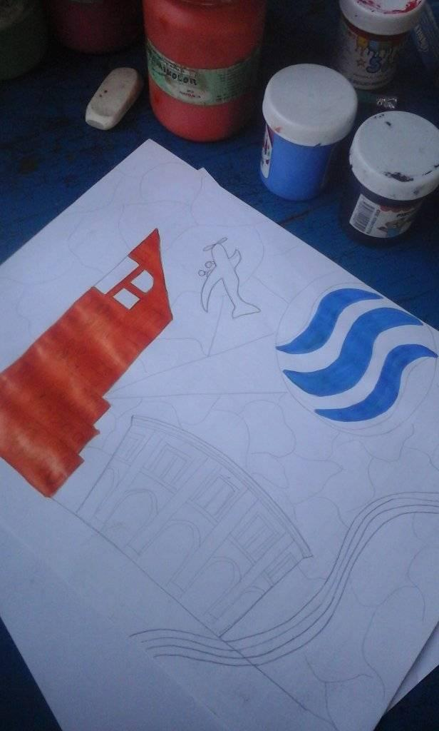 Seguidamente después de terminar de realizar los trazos de mi dibujo, empecé por darle color a la torre sindoni con su característico tono naranja el cual simula los ladrillos con la que fue creada y después pinte lo que seria el logo STEEM que a través de un foco se refleja en los cielos maracayeros.