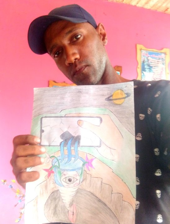 Un saludo cordial a toda la comunidad de draft crearte , muy bueno este concurso donde cada quien podra poner a volar su imaginacion, el concurso trata de arte subreal , un arte incoherente un poco sin sentido donde se incluya el logo de Steemit y eso fue lo que intente realizar, pensar e imaginar que podria yo relacionar con el logo y pense en una mano sosteniendo un telefono donde la pantalla del mismo esta rota y de ella sale parte de la tinta que la complementa en forma de tres chorros representados por el logo de estemit estos caen dentro de una taza donde se encuentran tres flores blanca, roja y rosada la raiz de estas es un ojo algo loco pero asi es, ademas esa taza se mantiene en el aire gracias a un torbellino soplado por unos labios en la obscuridad, el escenario se desarrolla en una especie de precipicio y al final plasme un cielo seminegro con un planeta desconocido.