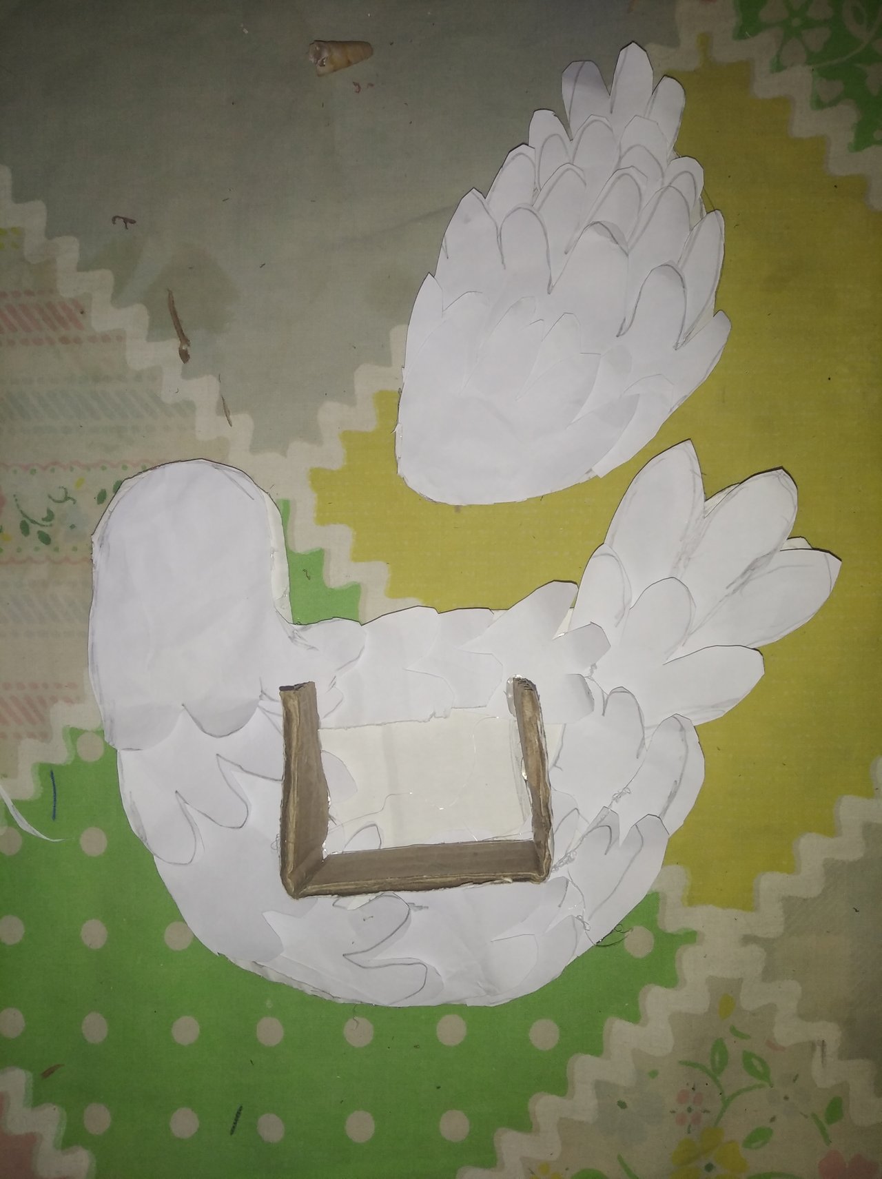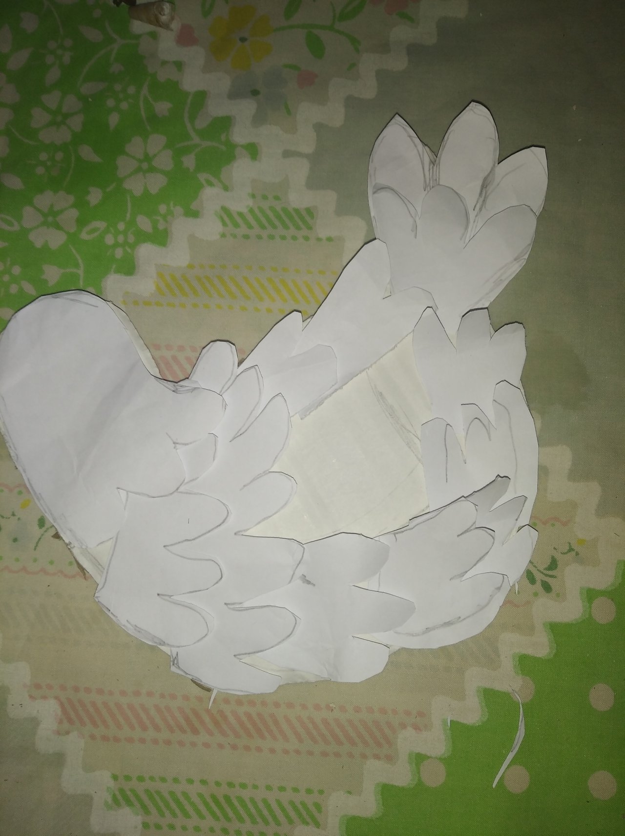Ahora que tenemos todas las piezas listas cortadas, empezamos armar las piezas pegando las con silicona, primero pegamos la base y las plumas para poder pegar el ala.