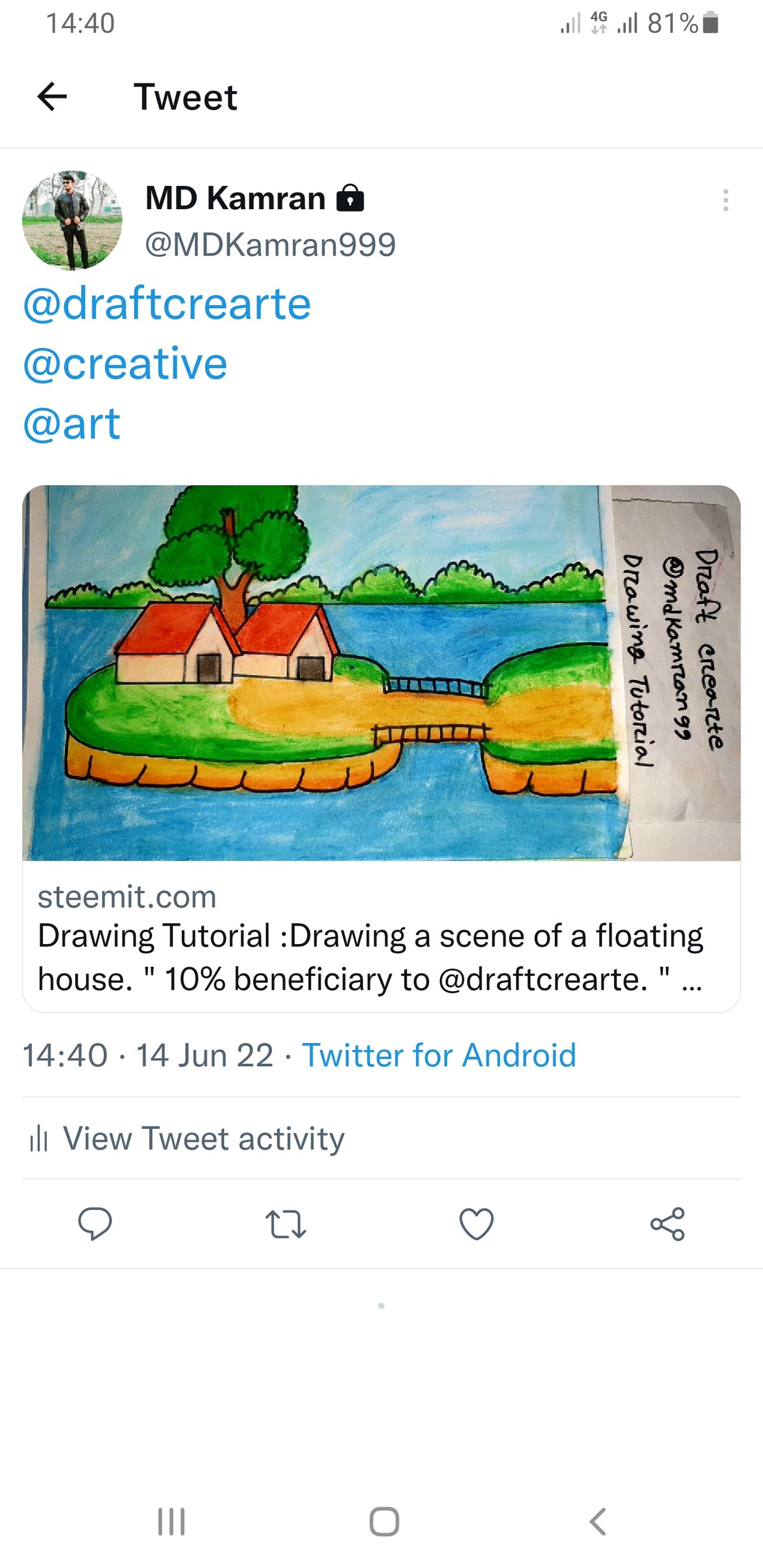Assalamualaikum everyone. How are you all? I hope you are all well. I too am well by the infinite mercy of Allah. Today I have appeared among you with an interesting drawing. That is the floating lamp formed in the chest of the river. We all like to see different forms of nature. The beauty of nature always fascinates us. Habitat is one of the few basic human needs to survive on earth. People always want to set up their own place of residence in a beautiful place. In the same way, today I have come among you to draw a beautiful landscape of the habitat to preserve the human civilization built on the river lamp. I hope you like my drawings.