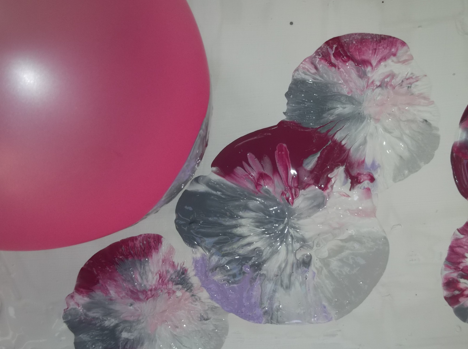 Con la ayuda de un globo lo fui colocando encima de la pintura y presionando para que los colores se mezclaran y formaran una pequeña imagen explosiva de colores.