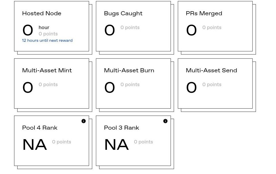 Here, by finishing each task, like running the node up to 12 hours, we get 10 points; for creating tokens, we get 200 points; and for burning and sending tokens, we get 200 points for each task. So totaling 610 points is what we get for finishing those. Those are the steps we need to repeat for gathering proof points. In my opinion, based on points, we may get real tokens. We need to wait for further details.