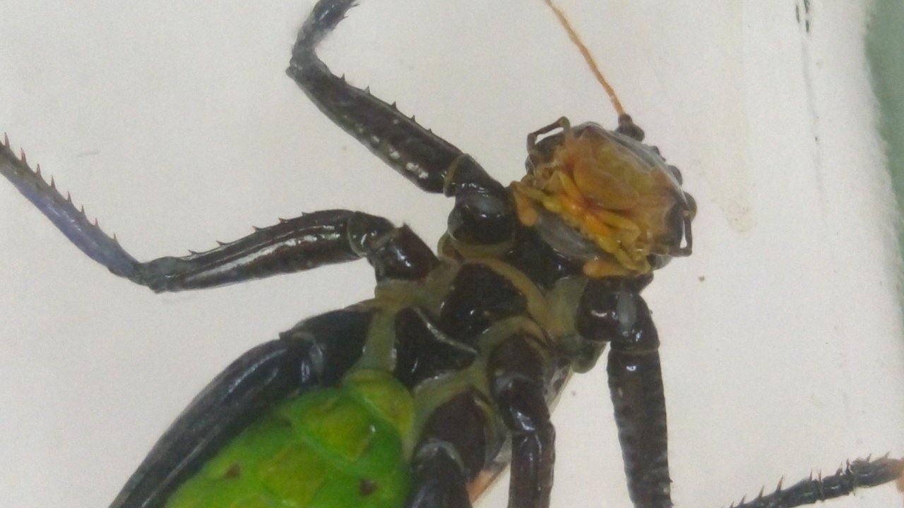 Logré hermosas capturas, pero en un descuido cuando quise sacarlo para fotografiarlo sin el vidrio, el amigo saltamontes dio un salto y escapó volando hacia la ventana, por lo que no pude obtener más tomas. Con todo fue una experiencia inigualable, entrar en contacto con el.