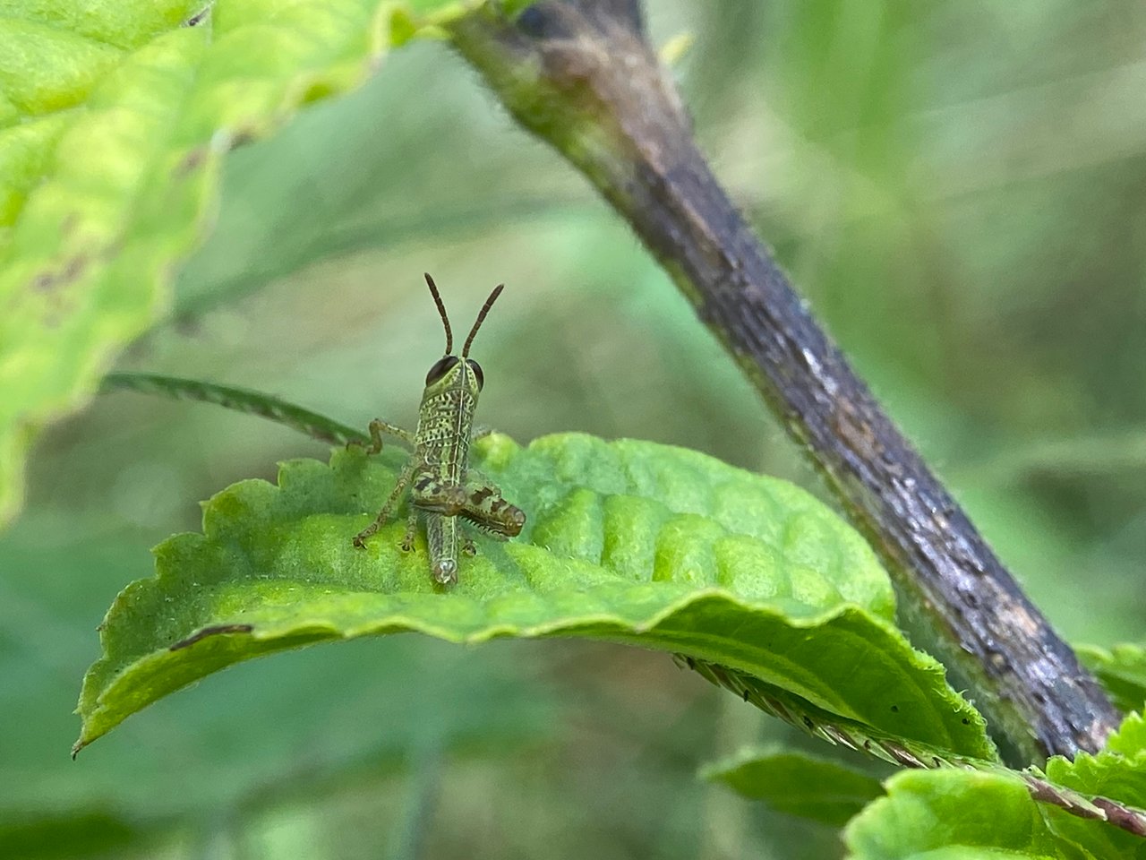 And took pictures of these grasshoppers in wild leaves or in wild grass and at that time I was accompanying my friend who was cutting grass for his livestock and I also tried to install an additional lens on the smartphone camera to be able to capture small images. like this insect that I have shown.