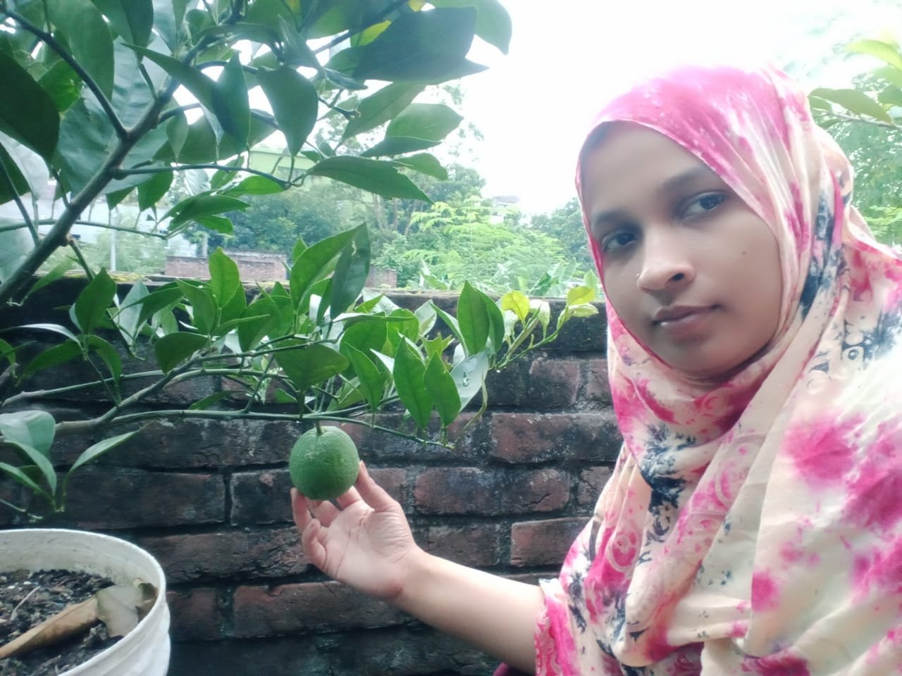 I have grown lemon trees, bitter gourd, and orange trees in my roof garden. Those trees are now bearing lemons and oranges. I like the eye-catching green nature very much. I love to plant trees and take proper care of them. A variety of vegetables and fruit trees should be planted without leaving empty spaces around the house. No chemical fertilizers are used in vegetables grown by hand so these vegetables are very beneficial for our health. I have planted puishak in tubs in the space next to my house and on the balcony of the house. With proper care, they grow very nicely.