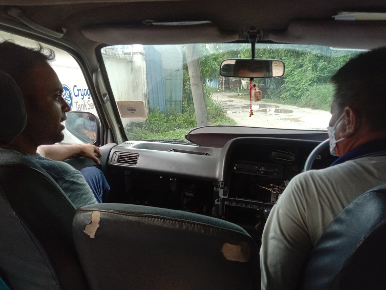সন্ধ্যা সাতটায় আমরা ডিউটি শেষ করে এবার বাসার পথে রওনা দেব আমাদের মিনি বাসটি অপেক্ষা করছে আমাদের জন্য বাসের ভিতরে উঠেই একটি ছবি উঠাই সামনে সিটে বসা আছে আমাদের এক বড় ভাই সেই ড্রাইভারের সাথে গল্প করছে।