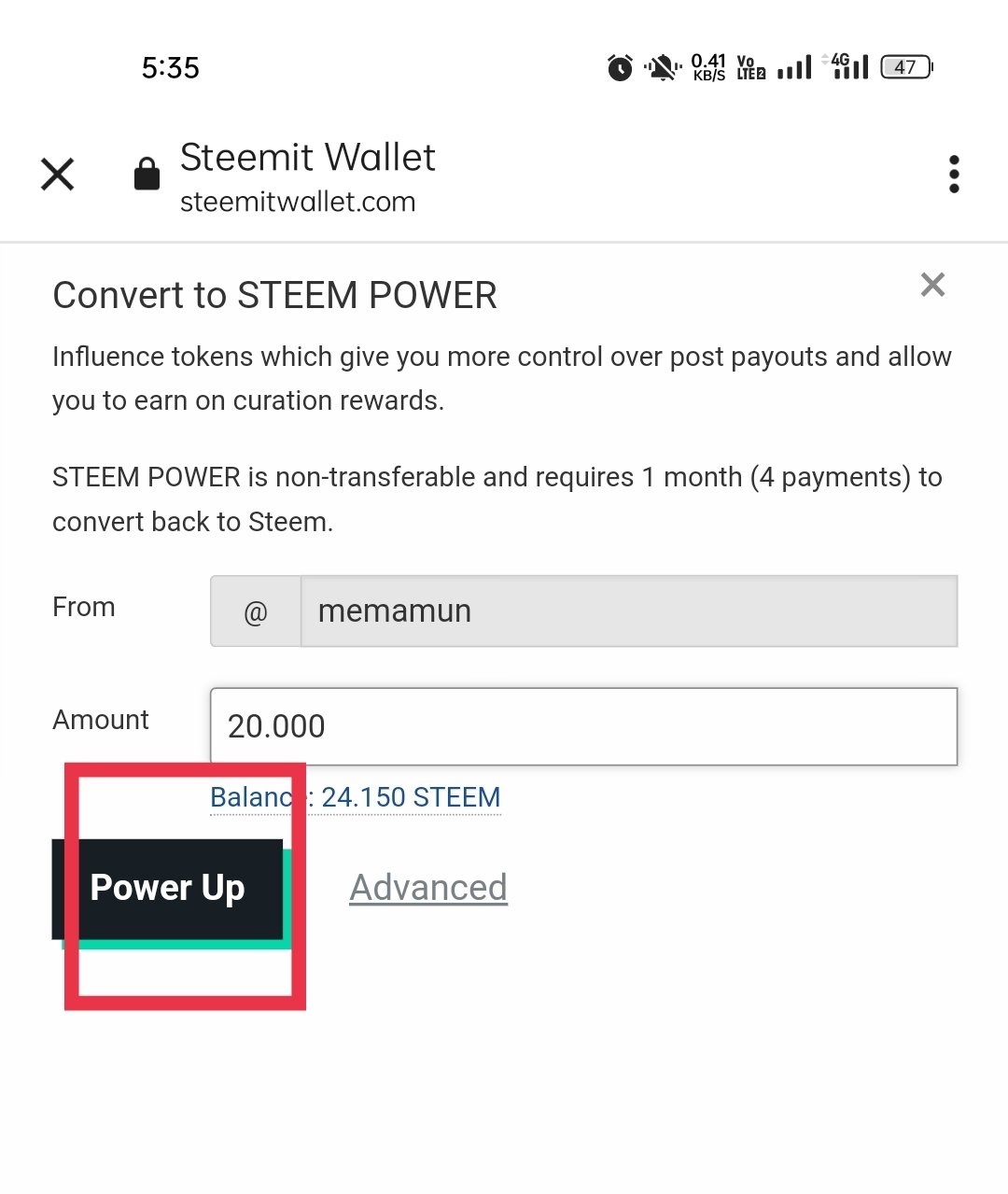 ২০ স্টিম পাওয়ার আপ --(20 Steem Power Up)