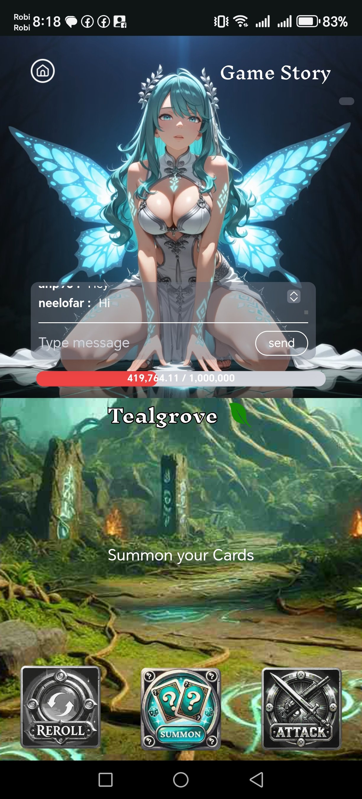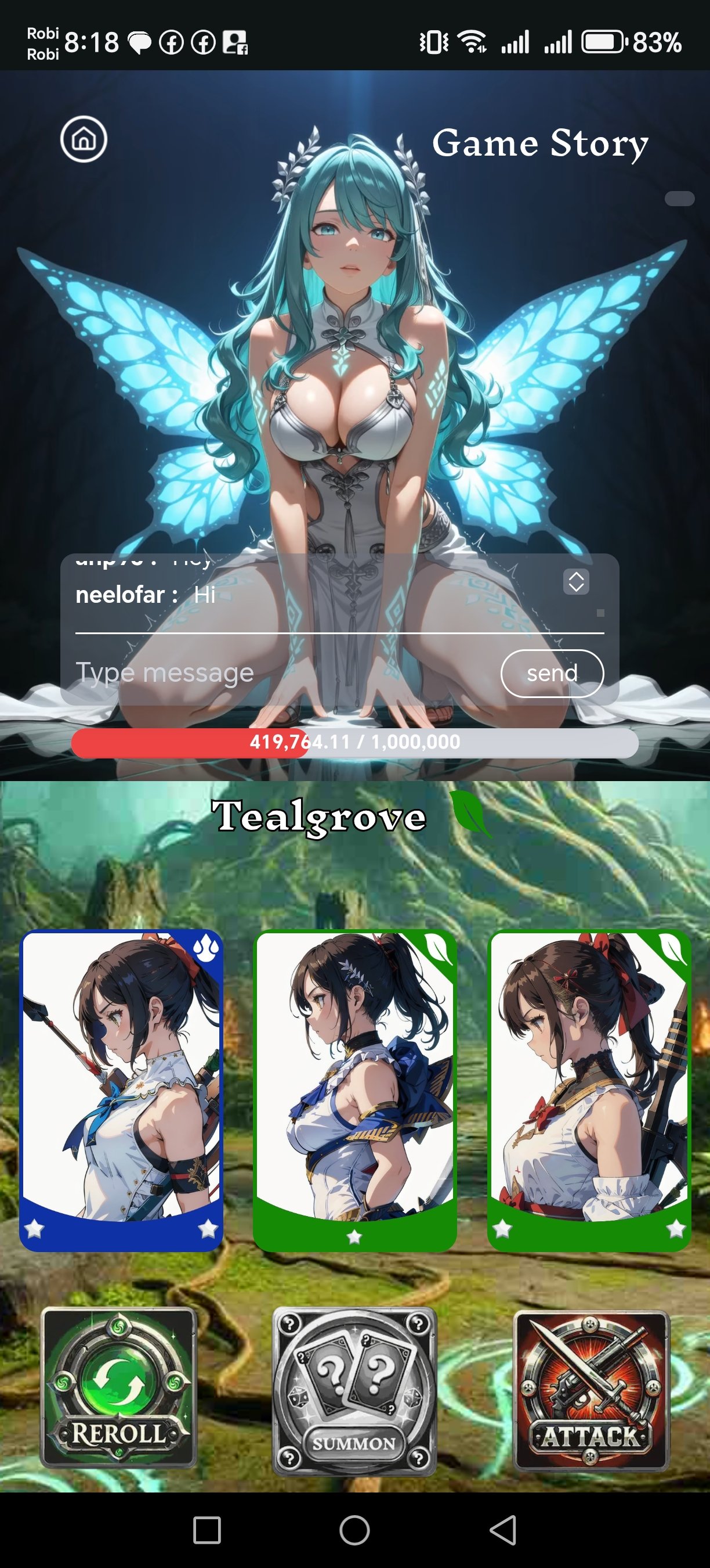 Then I clicked on the play button and i see summon came up, then I clicked summun. Then click on re roll Then I saw some cards appearing. next click for strong card and i got a card where damge 50 card..Also click Attack then i fighting we have seen in the display.