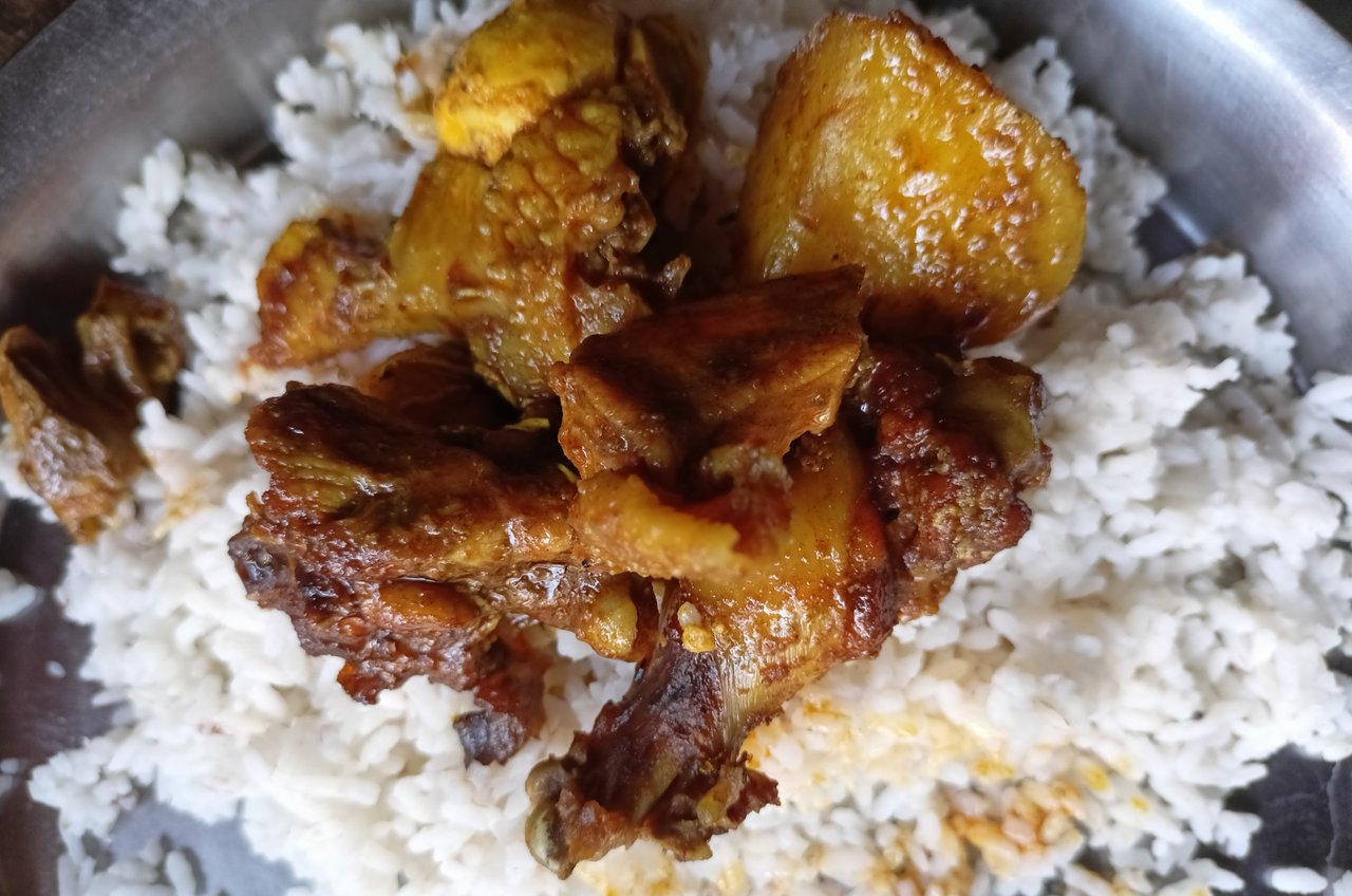 স্নান শেষ করতেই মা দুপুরের খাবার রেডি করে খেতে ডেকেছিল। আমি খেতে বসে দেখলাম মা আজ মাংস রান্না করেছে। যদিও খেতে ইচ্ছে করছিল কিন্তু খাবারে তেমন রুচি নেই। তারপর ৩/৪ টুকরো মাংস খেয়েছিলাম। মাংসের আলুটা কিন্তু খুবই সুস্বাদু হয় তাই আমি এক টুকরো আলু ও খেয়েছিলাম।
