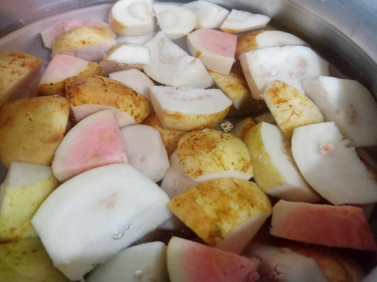 প্রথমে পেয়ারা গুলো ভালো করে ধুয়ে ছোট ছোট টুকরো করে কেটে নিতে হবে।একটি পাত্রে নিয়ে পেয়ারার দিগুণ পানি দিয়ে চুলায় দিতে হবে। চুলার আঁচ থাকবে মিডিয়াম।