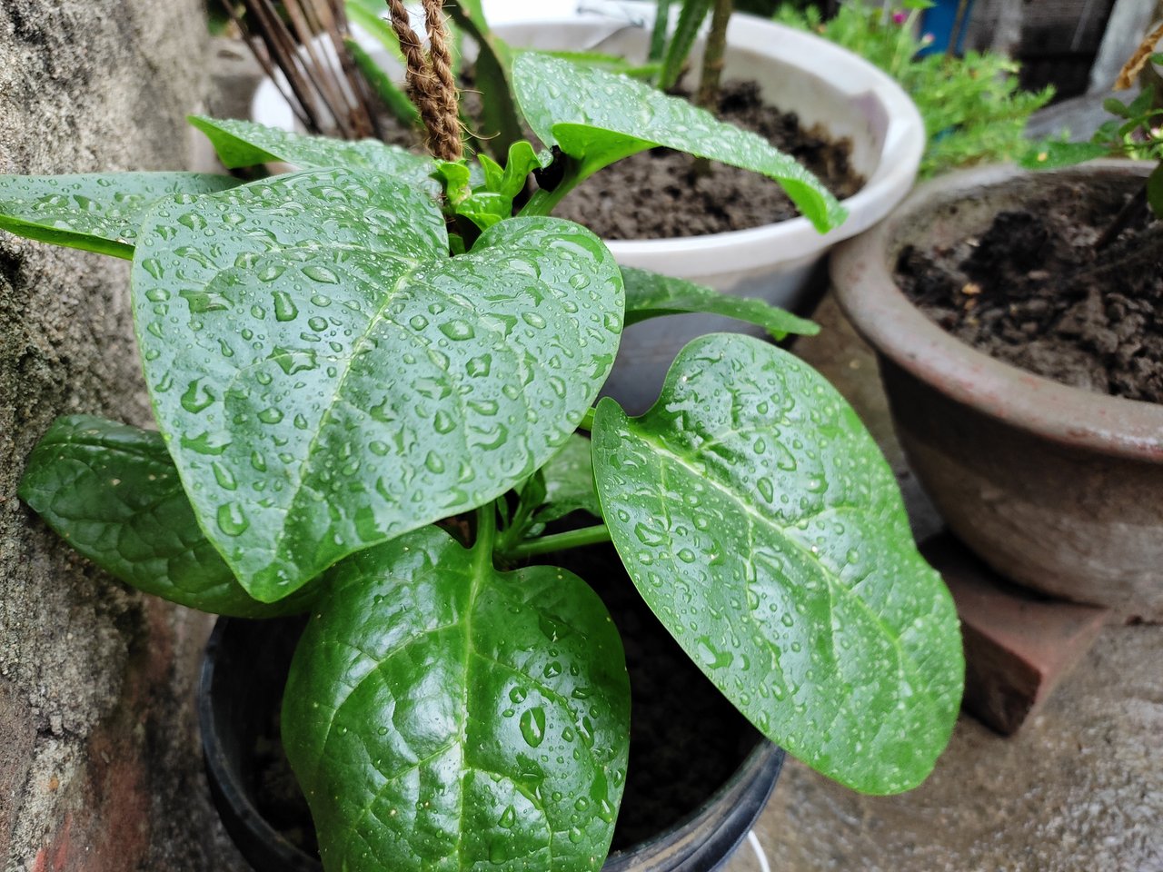 কয়েকদিন আগে আপনাদের সাথে আমার শাশুড়ি মায়ের হাতে লাগানো একটি পু্ঁই চারা লাগিয়েছেন ছিলাম। আজ দেখুন গাছটা বৃষ্টিতে ভিজে সুন্দর দেখতে লাগছে। একটা কাতার দড়ি শাশুড়ি মা বেঁধে দিয়েছেন, যাতে এই কাতার দড়িটাকে ধরে সাছটি একটু উপরের দিকে উঠতে পারে।