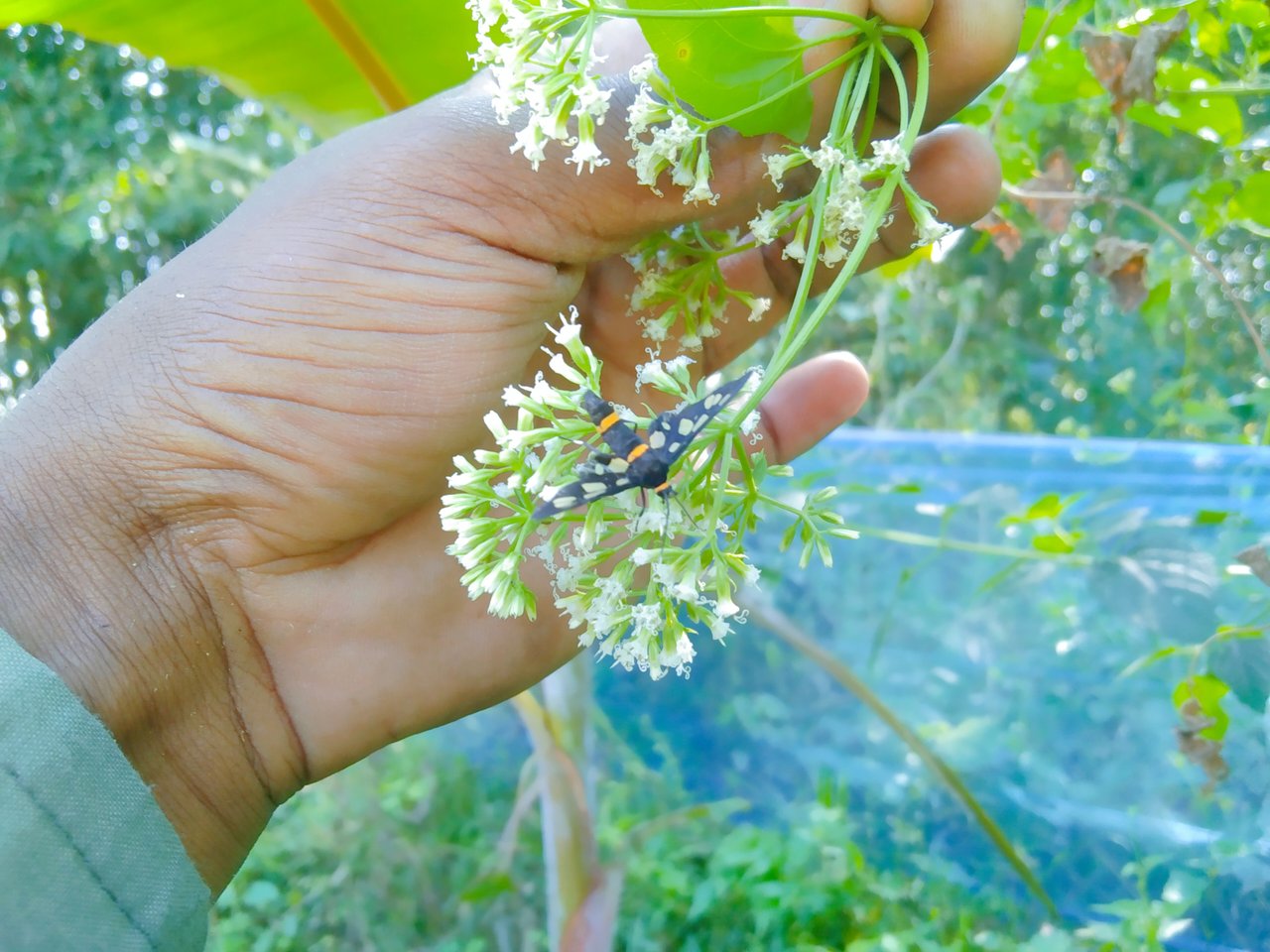 হঠাৎ করেই আসতে আসতে এই ফুলের গাছটি চোখে পড়লো তার সাথে একটি ছোট কালো প্রজাপতি সে ফুল থেকে মধু সংগ্রহ করতে খুবেই ব্যস্ত ছিল ৷ কালো প্রজাপতিটির কাছে যাওয়ার পরেও প্রজাপতি টি মধু সংগ্রহ করতে ব্যস্ত কোথাও উড়ে যাচ্ছিলো না ৷ তবে আমার অনেক সুবিধা হয়েছে উড়িয়ে না যাওয়ার জন্য আমি ছবি তুলতে অনেক সময় পেয়েছি এবং সময় নিয়ে ছবি তুলতে পেরেছি সেই দিক দিয়ে আমি অনেক খুশি ৷