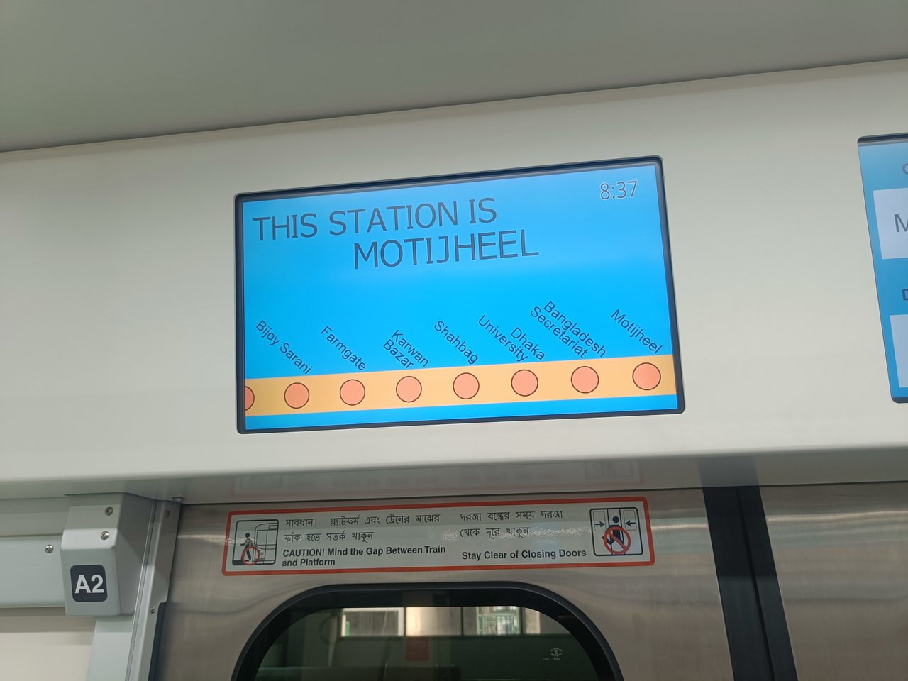 Now we purchase two punch card tickets from Pallavi station to Motijheel station. We didn't get a seat on the train when we left so, we had to stand. After about twenty minutes we reached Motijheel station. It was my first metro rail journey so enjoyed it very much. But it took me much less time, and I didn't have to get stuck in traffic.
