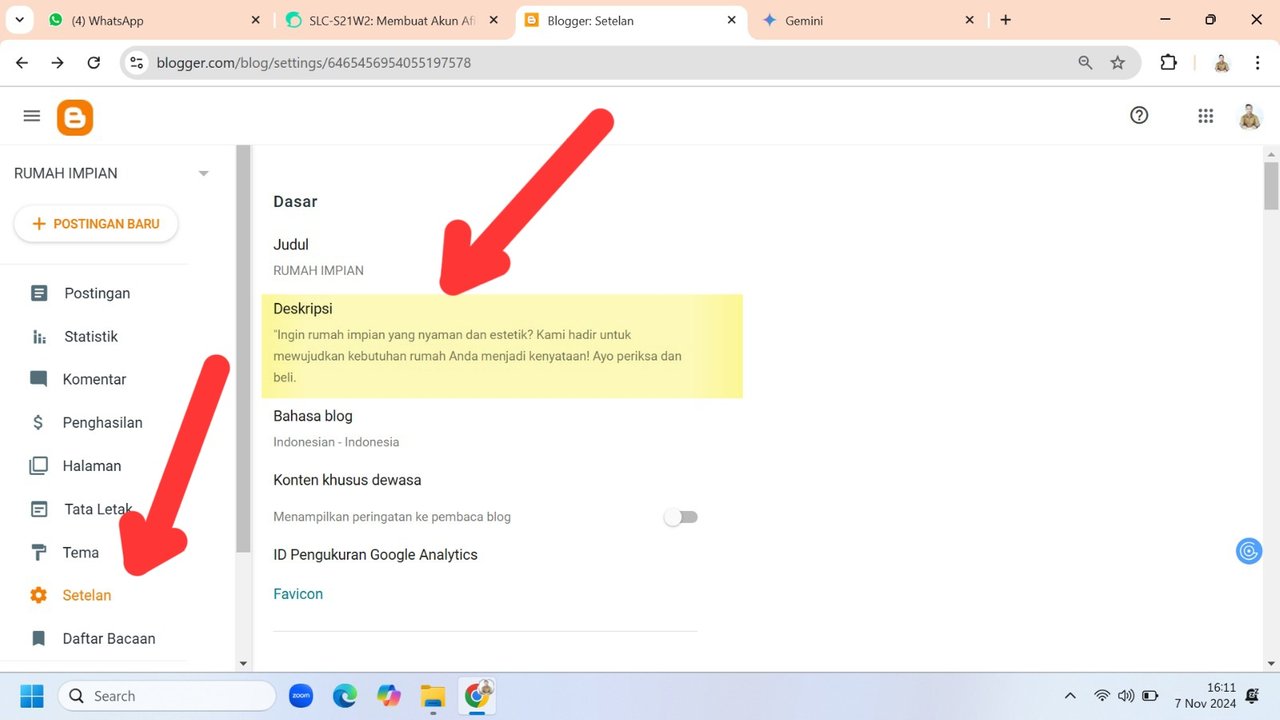From the beginning of creating a blog I have determined the title of the blog by giving the name “Rumah Idaman” meaning that this will be a special blog containing household supplies. I have specifically added a niche about my blog in the settings menu of this blog, so that everyone can read this blog description. I think household supplies are items that are always in demand by many people, especially women. I'm sure if you focus on household products, it will be successful and have many buyers.