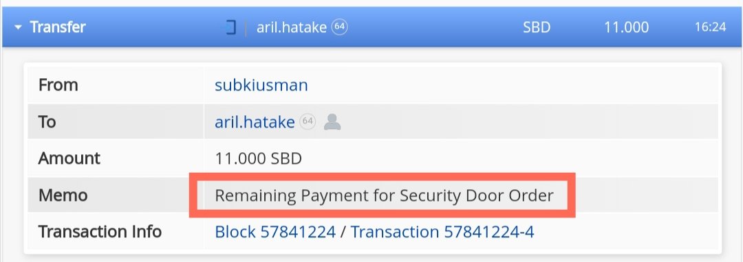 4. Remaining Payment of Security Door Order at Karya Stell owned by @aril.hatake + Bonus for Medical Expenses for his Sick Parents