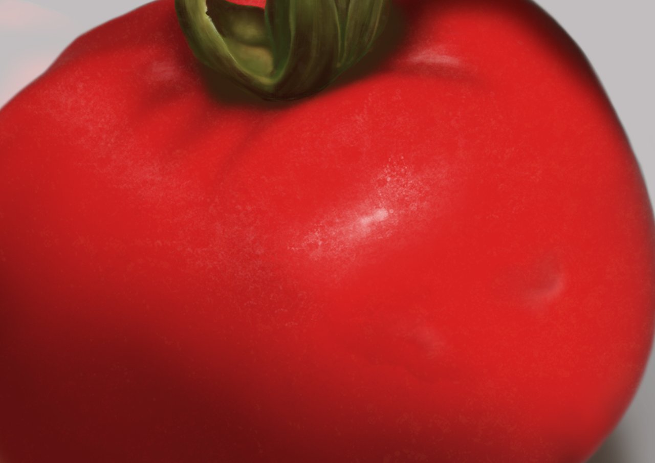 To give a more pleasant visualization of the tomato I am going to add some elements such as a surface where the tomato sits, shadows, reflections on the wall, etc.