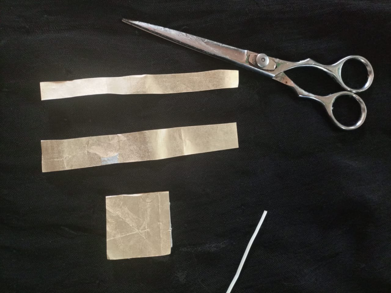 I cut a strip of gold paper approximately 1 inch with 8 to 10 in length.