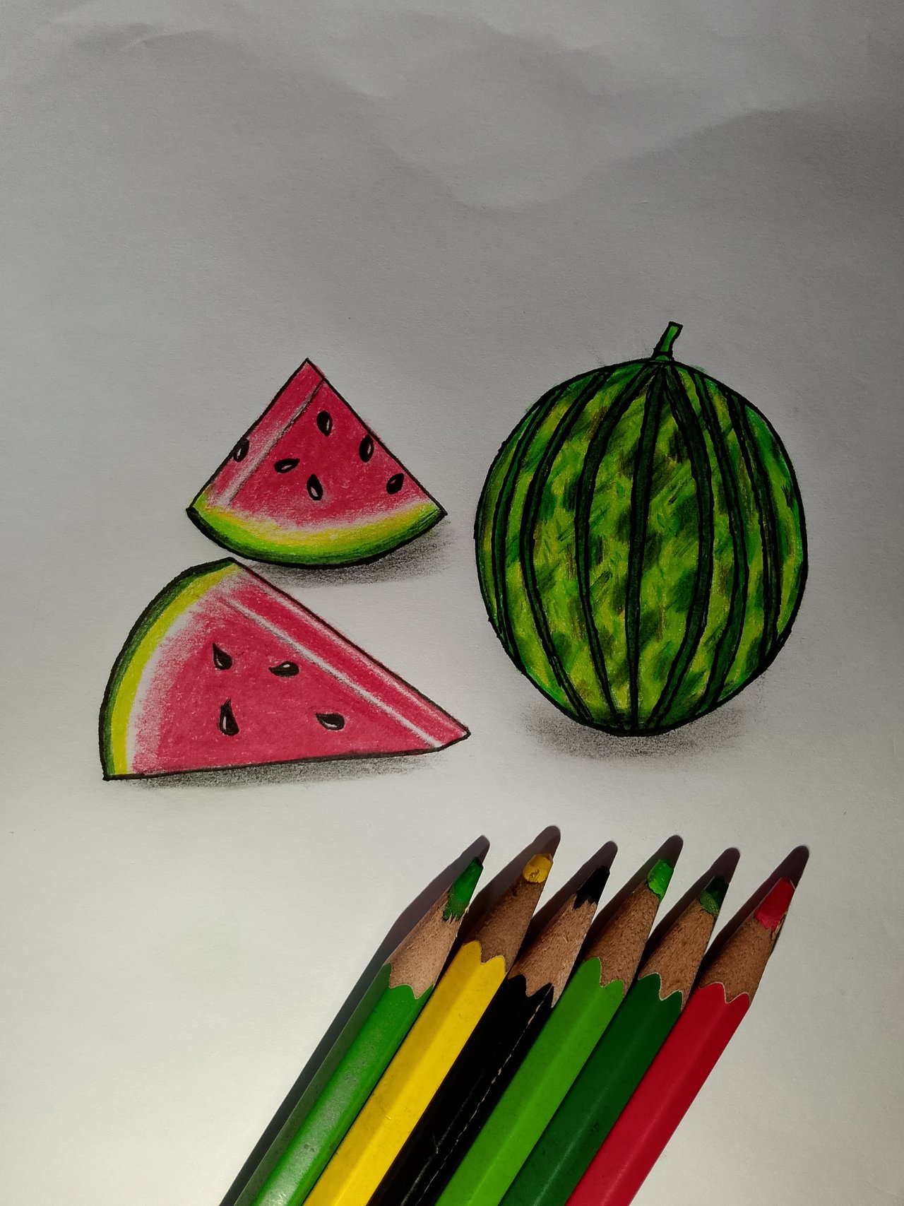 Today, I am going to share my watermelon drawing with you all. Letโs take a look at how I completed my drawing.
