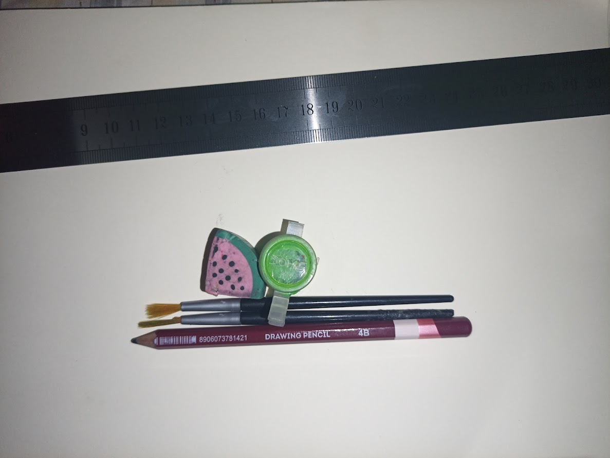 First, I took the necessary materials for art. Then I first drew two rose apple fruits on a white paper with a pencil.