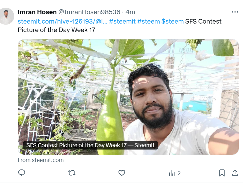 By the grace of Allah, I have succeeded this time. On the roof of the building, I first processed the soil and planted some trees there. As trees were gourd trees, puishak trees. I cooked and cooked vegetables from everything I could catch. Now why today's photo is so important to me is because this is the first time I have grown vegetables from a hand-planted vegetable plant, and I was able to take a selfie standing in front of it. And my mother, my wife, and the owner of my building are all happy to see such a beautiful fruit on my tree. In the future, I have bought a land amount of 6 percent. We will build a small house for two brothers at 4 percent, and in the two percent of land we will grow vegetables and plant guava trees, mango trees, and jam trees. This is my wish.
