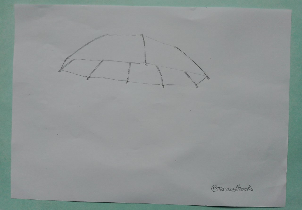 I created a pencil sketch, outlining the canopy of the Umbrella. This sketch will guide me through the drawing process.