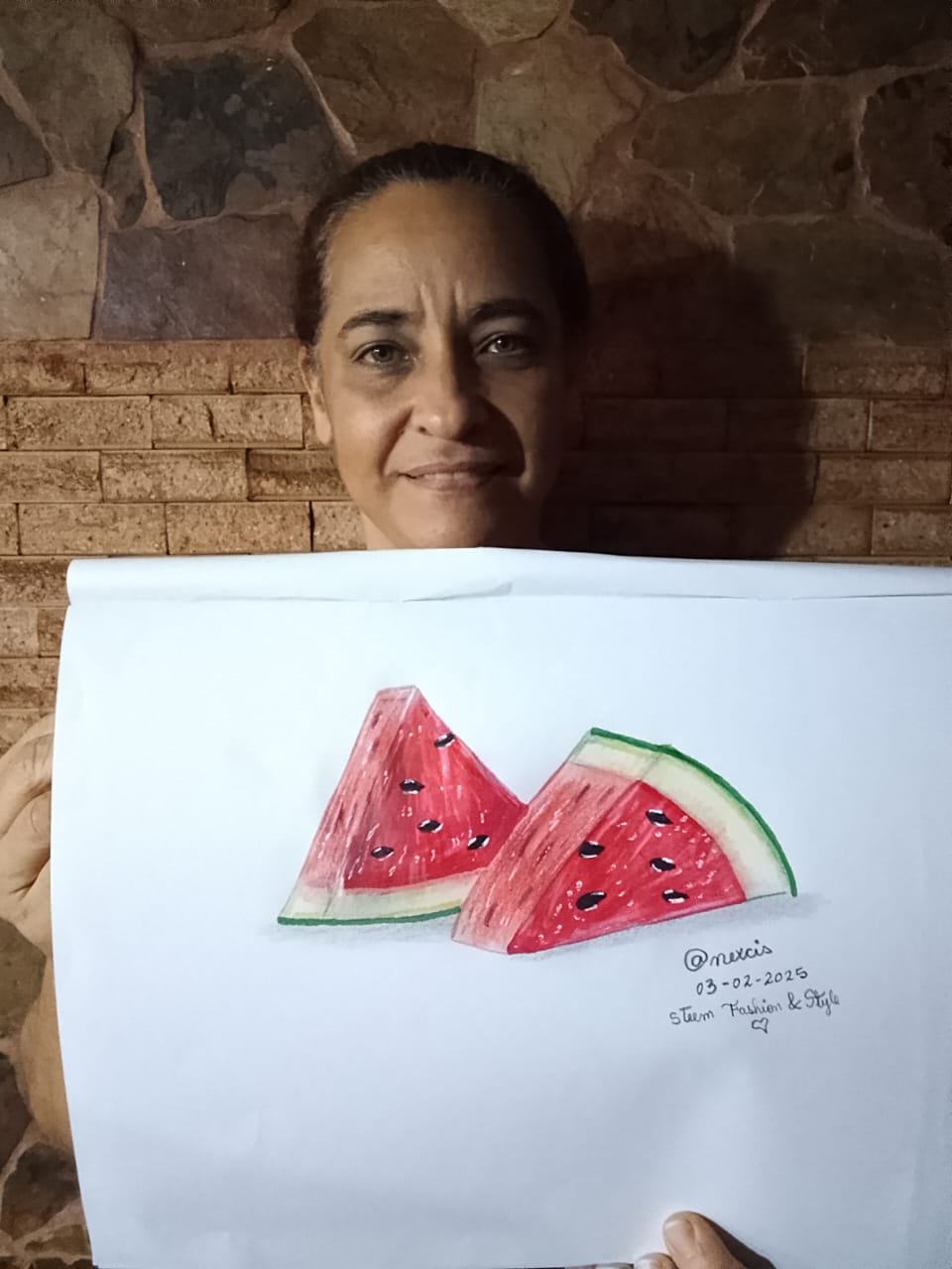 La fruta que dibujaremos la conocemos en mi país como Patilla, también se conoce en otros países o regiones como sandía, aguamelón, melón de agua, paitilla, entre otros. Es una deliciosa y dulce fruta original de África, rica en vitaminas A,B,C y Potasio, pero su principal beneficio es el Licopeno; el pigmento antioxidante que da a la fruta su espectacular color rojo intenso; inclusive se le atribuye beneficios cardiovasculares, también se dice que consumir con regularidad esta fruta puede prevenir diferentes tipos de cáncer; aunque no es comprobado. La verdad es que es muy rica y la disfrutamos a cualquier hora, en especial si vamos a la playa, jejeje. Hoy día se consigue en todo el mundo. ¿Qué nombre recibe esta fruta en tu país?.