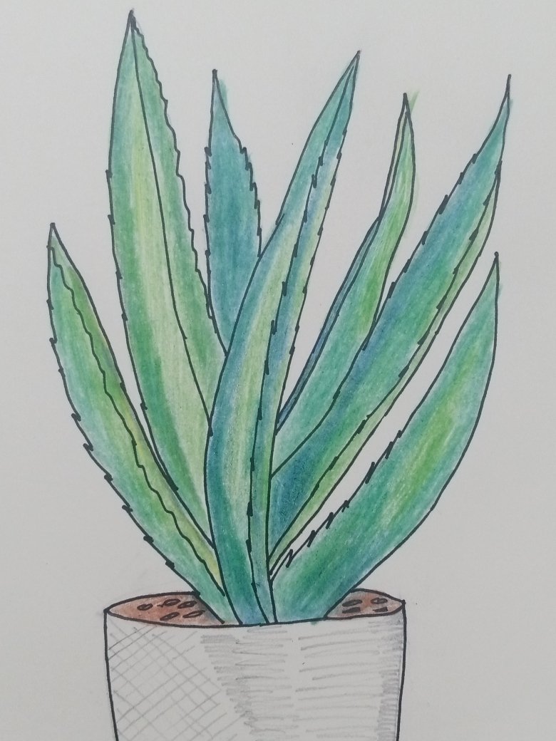 Then I colored the aloe Vera drawing with my drawing pencil with a marker. This makes the picture look very beautiful after coloring.
