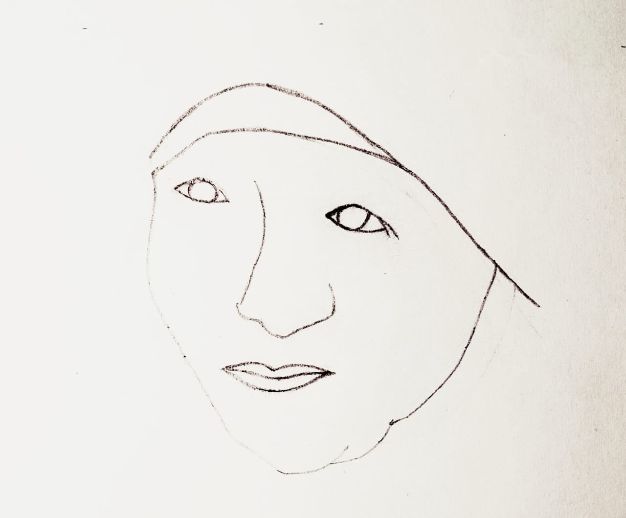এই পর্যায়ে ওনার মাথায় শাড়ির আঁচল মাঝ দেওয়ার জন্য এঁকে নিয়েছি।