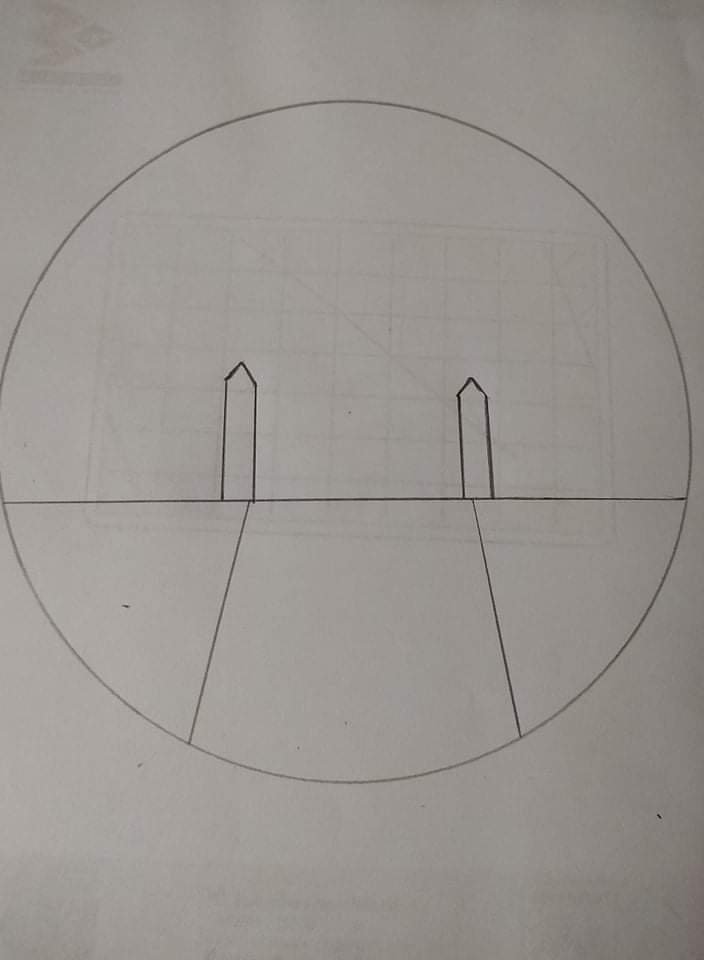 বৃত্তের মাঝ বরাবর হালকা একটু নিচের দিকে এক প্রান্ত থেকে অন্য প্রান্ত পর্যন্ত দাগ দিয়ে নিয়েছি। আবার এই দাগের দুইপাশে দুইটা লম্বাকৃতির করে নিচের দিকে দাগ কেটে নিয়েছি।