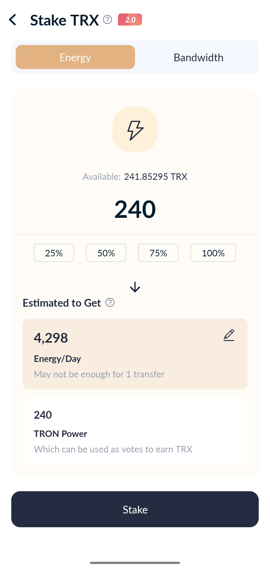 আশা করছি আপনাদের সবারই ব্যাংক অ্যাকাউন্ট রয়েছে। আমাদের বাংলাদেশ ব্যাংকের একটি অপশন রয়েছে, সঞ্চয় পত্র। এখানে আপনি কিছু সংখ্যক টাকার স্থায়ী কিছু সময়ের জন্য রাখতে পারবেন। এর বিনিময় আপনার টাকা থেকে কিছু লভ্যাংশ আপনাকে দেয়া হবে। ঠিক একইভাবে এই সিস্টেমটা কাজ করেন। অর্থাৎ আপনি কিছুদিনের জন্য ট্রন স্টেকিং করে রাখবেন এবং সেখান থেকে ভোট দেওয়ার মাধ্যমে আপনি কিছু রিওয়াড আর্ন করতে পারেন অর্থাৎ আপনি যে স্টেকিং করে পাওয়ার আর্ন করেছেন সেই পাওয়ার থেকে আপনার রিপেজেনটিভ কে ভোট দিতে পারবেন এবং আপনার রিপ্রেজেন্টিভ সেখান থেকে মাইনিং করে তার রিওয়াডের কিছু অংশ আপনার সাথে শেয়ার করবে। সহজ ভাষায় বুঝানোর চেস্টা করেছি, আশা করি বুঝতে পেরেছেন। আজ আমি ২৪০ ট্রন স্টেকিং করেছি, সেই পদ্ধতি গুলো নিচে দিয়ে দিলাম।